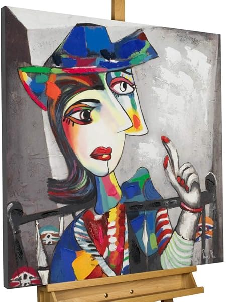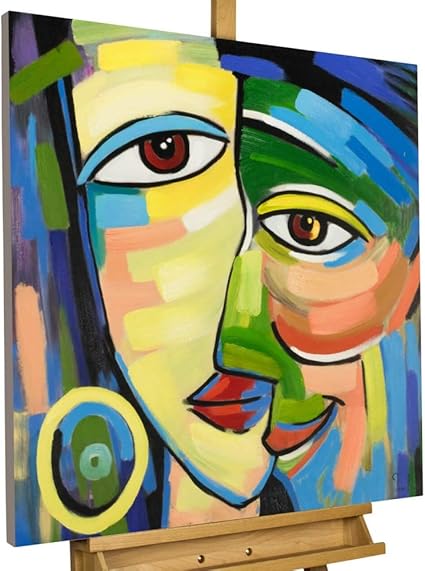 KunstLoft® Peinture Acrylique sur Toile 'Un avec toi' 80x80cm | Tableau Acrylique Peint à la Main | Toile sur Cadre Bois | Abstrait Visage Bleu Multicolore: Amazon.fr: Cuisine & Maison