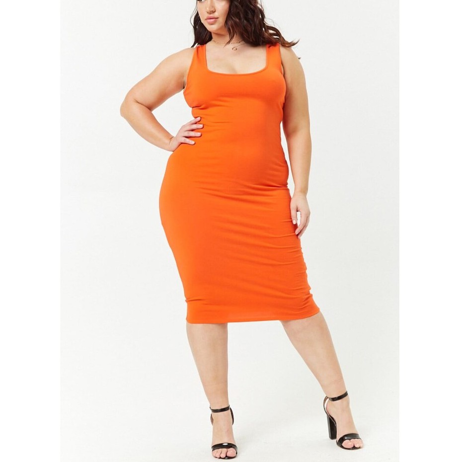 Forever 21 Plus Size Bodycon Midi Dress Orange Shopee Philippines