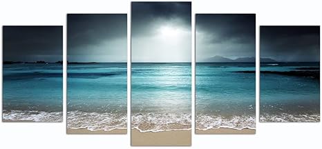 Live Art Decor- Impressionnante Paysage marin Impression sur toile Belle Lever de soleil sur la mer sur toile Peinture giclée Art pour décoration murale, encadrée et facile à suspendre, Beach-4, 10"x16"x2pcs+10"x20"x2pcs+10"x24": Amazon.ca: