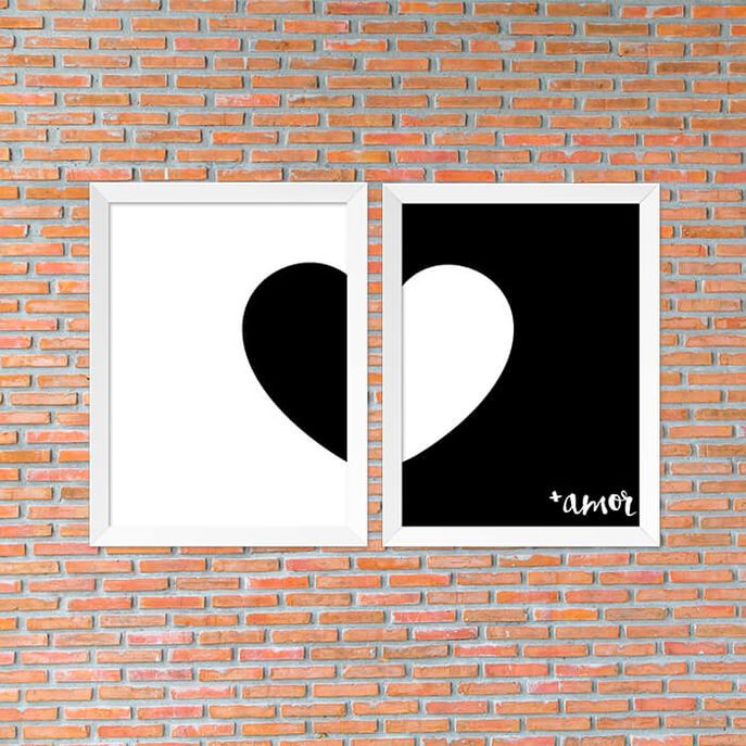 Kit de Quadros Coração Preto e Branco - Triakasa