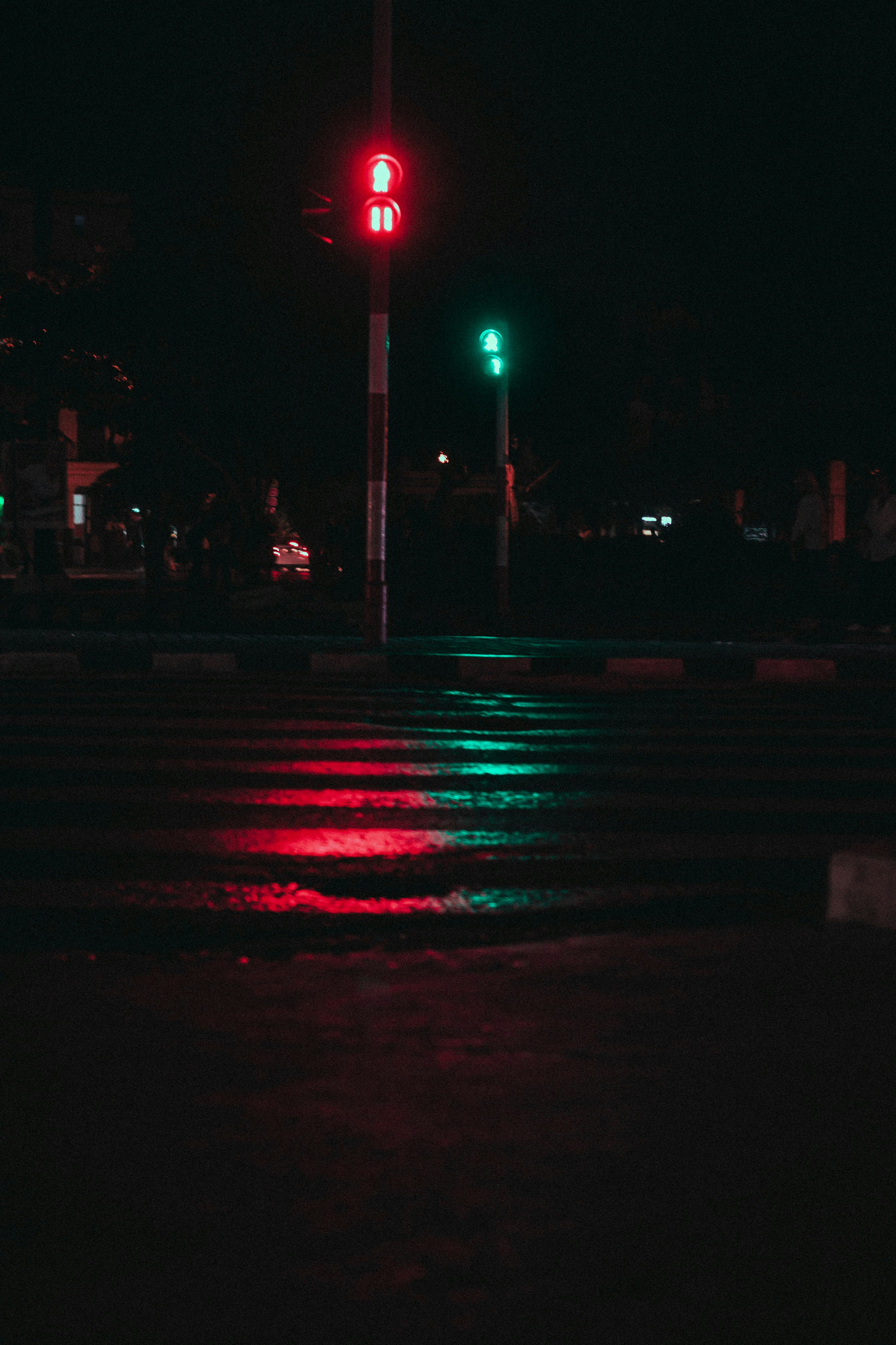 Traffic Light With Red Light During Night Time Free Stock Photo